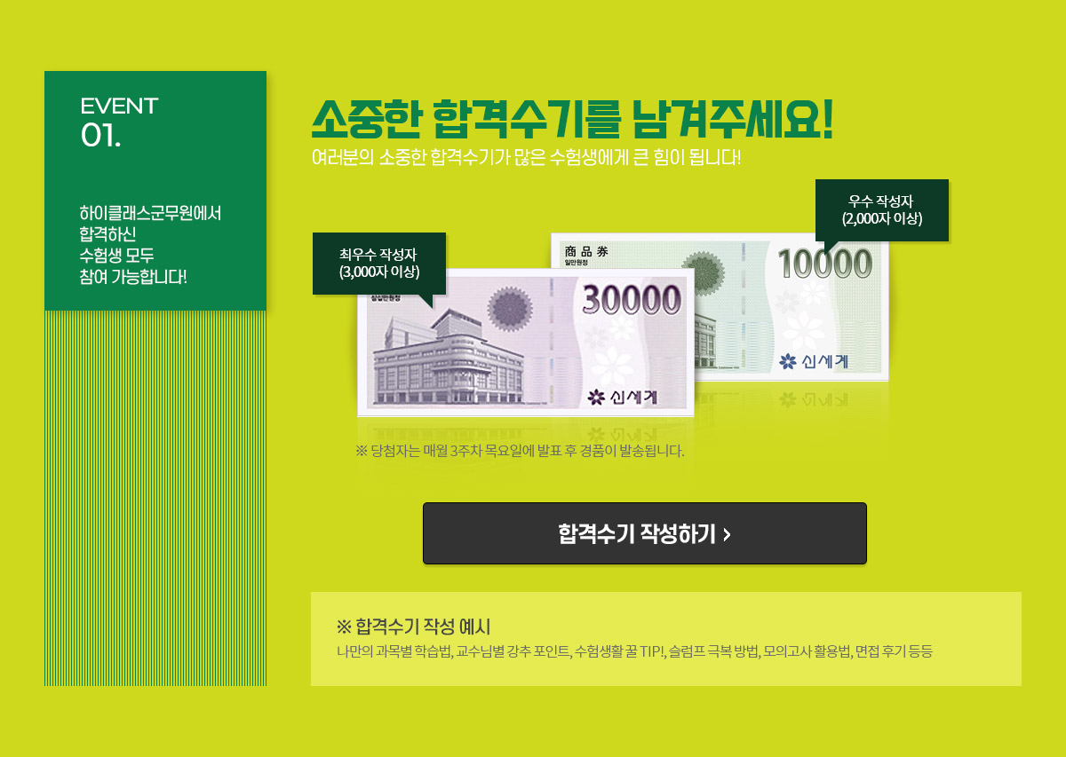 · 합격 수기 경품 발송은 회원정보에 등록된 핸드폰 번호로 문자 발송 됩니다.