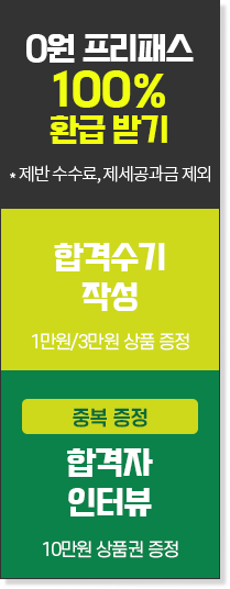 · 환급 이벤트, 합격수기, 합격자 인터뷰 모두 중복으로 참여하실 수 있습니다!