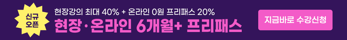 ·평생 무료 강의 연장을 받으신 회원이 현장강의를 원하실 경우 수수료가 발생하며 문의 시 안내 드립니다.