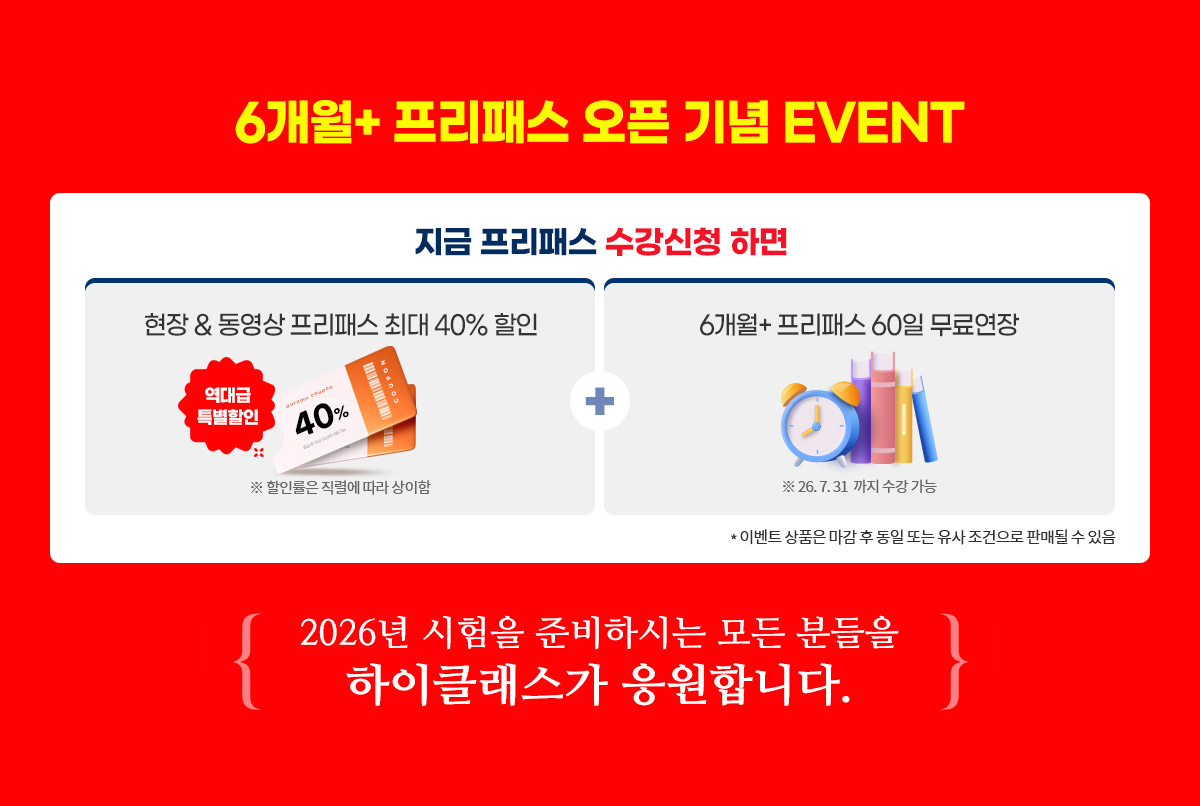 ·(구)Unlimited 상품은 현장강의는 1년이며, 온라인 강의는 합격할때까지 추가 되는 상품 입니다. (해당년도 시험 응시표 제출)