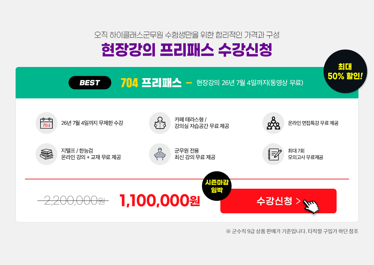 1. 0원 프리패스 9급 군수직 수강 >> (공채) 9급 군수직 최종 합격