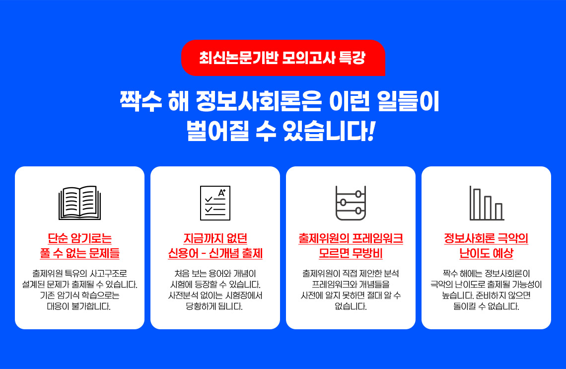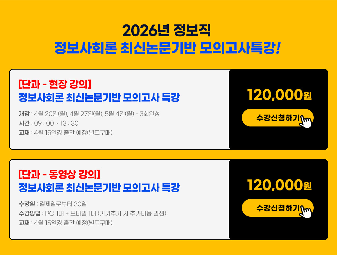 - 강의무료제공대상자(교재 별도 구매) : 704 / 365 / 0원 / 정보사회론 단과 프리패스 수강 중인 경우
