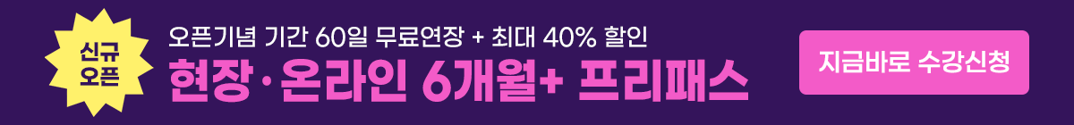 • ·평생 무료 강의 연장을 받으신 회원이 현장강의를 원하실 경우 수수료가 발생하며 문의 시 안내 드립니다.