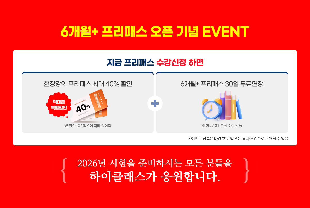·(구)Unlimited 상품은 현장강의는 1년이며, 온라인 강의는 합격할때까지 추가 되는 상품 입니다. (해당년도 시험 응시표 제출)